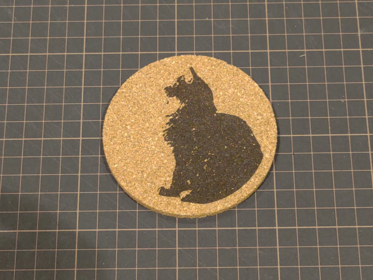 レーザーで彫刻すると、はっきりと黒く焼き付くため、デザインがくっきりと見えます。名前やイラスト、記念日などを入れれば、特別なコースターの完成です。