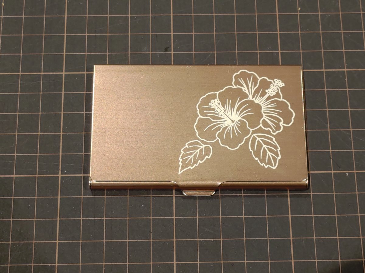 アルマイト加工または塗装が施されているアルミ製品なら、レーザーで美しく彫刻できます。表面の塗装やコーティングを除去することで、下地の色が現れ、コントラストのあるデザインが可能です。