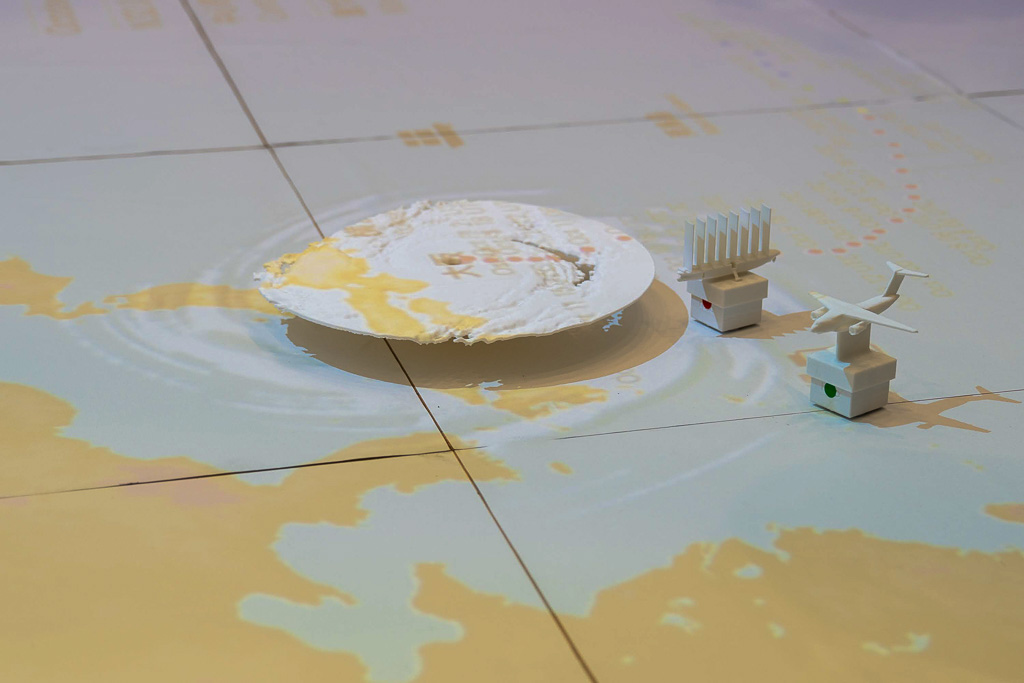 現実に発生した台風を標本化し、記録データをもとに巨大な地図の上を再現走行します。